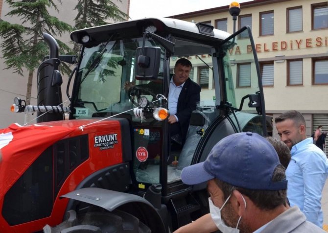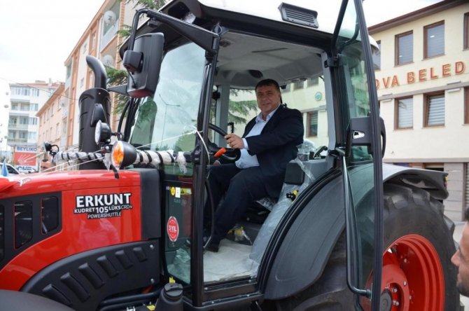 Törene katılan Beylikova Belediye Başkanı Özkan Alp, traktörün koltuğuna oturarak, "Çevre ve Şehircilik Bakanlığı tarafından belediyemize hibe edilen sıfır traktörün Beylikovamıza hayırlı ve uğurlu olmasını diliyorum" sözlerini kullandı.