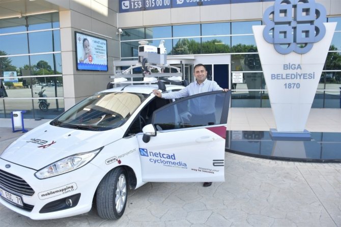 Biga Belediye Başkanı Bülent Erdoğan'ın E-İmar ile Kent Rehberi projesi tanıtım toplantısında müjdesini verdiği şehrin 360 derece panoramik görüntü çekimi çalışması hayata geçti. Biga Belediyesi Hizmet Binası önünden Başkan Erdoğan'ın katılımıyla hareket eden 360 derece panoramik çekim aracı şehri sokak sokak, cadde cadde gezerek görüntü aldı.