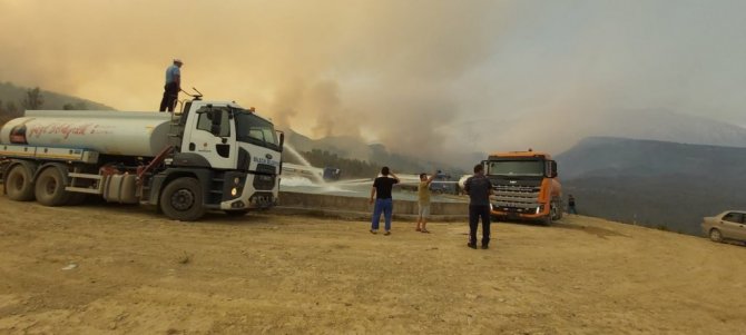 Antalya'da başlayan ve geniş bir alana yayılan orman yangınları için Bilecik Belediyesi İtfaiye Müdürlüğü ekiplerinin çalışmaları devam ediyor. Ekipler, Akdeniz Bölgesinde etkisini sürdüren yangınlarda görevlerini eksiksiz şekilde yerine getirmeyi sürdürüyor. Antalya'nın Manavgat ilçesi Güzelbağ köyündeki görevlendirmenin ardından, Taşağıl'da ki helikopter su alma havuzunu dolu tutmak için görevlendirilen Bilecik Belediyesi itfaiye ekipleri çalışmalara aralıksız katılıyor.