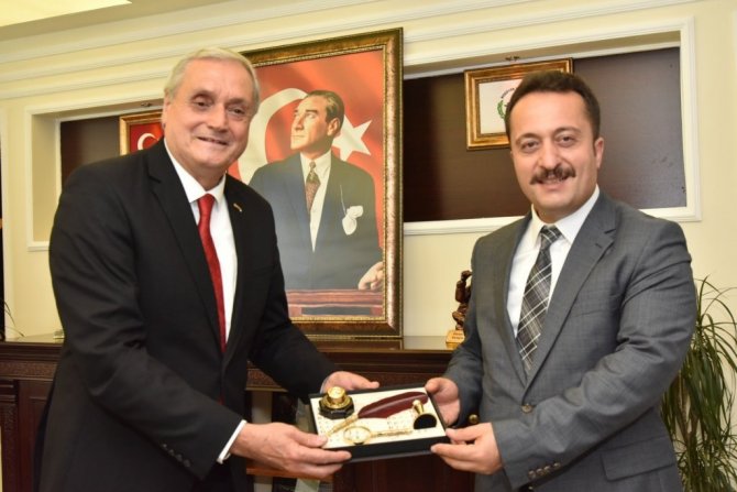 Vali Şentürk'e Bilecik ve Bozüyük'e yapmış olduğu hizmetler nedeniyle teşekkür eden Başkan Bakkalcıoğlu, hediye takdiminde bulundu.