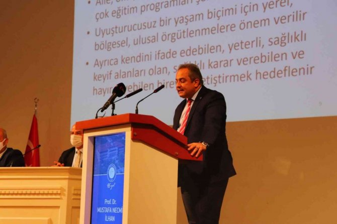 Panel konuşmacılarından Prof. Dr. İlhan, "Türkiye'de ve Dünyada Bağımlılıkla Mücadele" konulu sunumuyla Türkiye'deki uyuşturucu kullanımına, bunların oluşturduğu sorunlarına ve sağlık problemlerine değindi. İlhan, uyuşturucunun bir güvenlik hatta terör sorunu olduğunu vurgulayarak, "Bizim ülkemiz özelinde baktığımızda bağımlılık özellikle uyuşturucu başta olmak üzere bir güvenlik sorunu hatta bir terör sorunu. Sizin bağımlılıkla yaptığınız her mücadele, özellikle uyuşturucu bağımlılığıyla bizim Mehmetçiğimize, polisimize, vatandaşımıza sıkılan kurşunu engellemek anlamına geliyor. Bu duyarlılıkla konuya bakarsanız çok daha değerli olduğuna inanıyorum. Türkiye Cumhuriyeti, bağımlılıkla mücadelede piyasaya uyuşturucu ve benzeri bağımlılık maddelerin sokulması konusunda engelleme hem de bağımlı olanların tedavisi, rehabilitasyon ve bunların ötesinde "Hiç bağımlılığa başlama" konusunda çok büyük çabalar yürütüyor" cümlelerini kullandı.