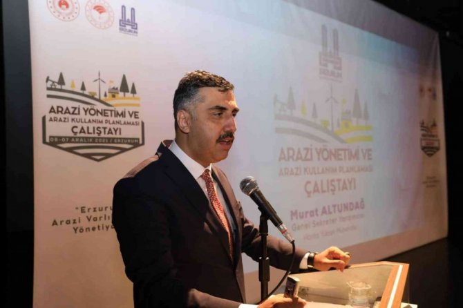 Erzurum Büyükşehir Belediyesi Genel Sekreter Yardımcısı Murat Altundağ da konuşmasında arazi yönetiminin önemine dikkati çekti. Altundağ, "Mekansal planlamada yüz binlik ölçekli bölgesel planlarımız var. 1/25000 ölçekli konuma dayalı bir arazi kullanım kararları ile birlikte arazi yönetimi planı için çalışma başlattık. Arazi Yönetimi ve Arazi Kullanım Planlaması çalışmasının amacı nedir? Erzurum'da kentsel ve kırsal kalkınmanın sağlanması için yeni bir anlayış çerçevesinde akılcı bir kullanıma dayalı arazi politikalarının hazırlanması gerekiyor.
