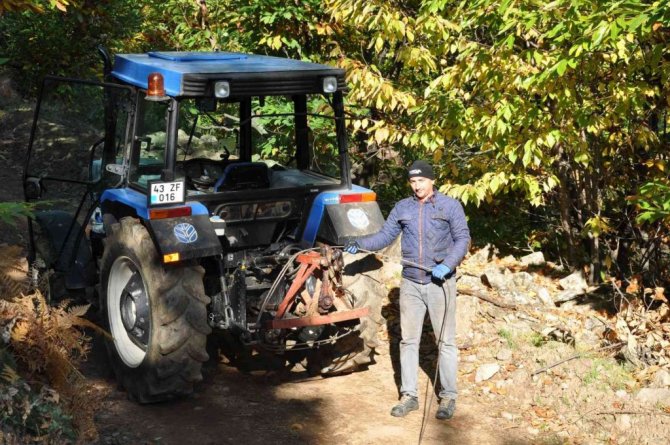 Traktöre takılı aparat ile kestane silkme işi yapan Hasbi Çağan, makine ile yapılan kestane toplama işinde ağaçtan düşme kazalarının olmadığını ifade etti.
