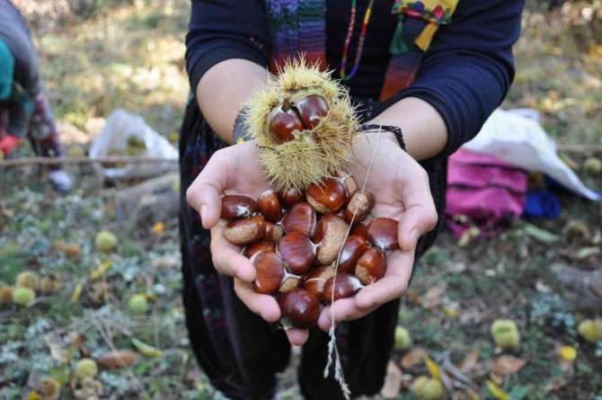 Gençlik yıllarında zor şartlar altında kestane toplandığını söyleyen 60 yaşındaki Dudu Korkmaz, traktörlerin ve araçların çıkamadığı dağlık alanlarda, yük hayvanlarını kullandıklarını belirtti. Korkmaz, "Kestane ağacına babamız çıkar sırıkla kestaneleri silkerdi. Kestane toplama işini kendimiz yapardık" diye konuştu.