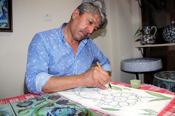 Kütahya’da Kültür ve Turizm Bakanlığı sanatçısı Ali Kaya, bin yıl garantili çini üretti.