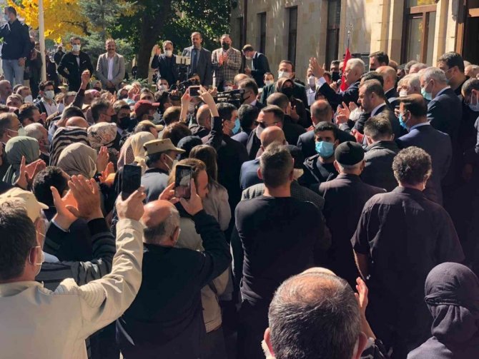 "Bugünlerde Türkiye'ye zerre miskal hiçbir hayrı dokunmamış, sürekli darbelerden, vesayetlerden medet umarak iktidar hayali kuran bazı muhalif kesimler zannediyorlar ki millet iradesi onlardan yana karar verecek. Bizim milletimiz feraset sahibidir. Bizim milletimiz kimin doğru yaptığını, kimin yapmadığını en güzel bilen millettir. Biz 20 yıldır bunu gördük. En son Cumhurbaşkanlığı seçiminde hem de milletvekilliği seçiminde Bayburt birinciliği kimseye bırakmadı. Allah hepinizden razı olsun. Rabb'im birliğimizi, dirliğimizi bozanlara fırsat vermesin. 1,5 senedir bir küçük mikrop, bütün dünyayı dize getirdi ve biz bu mikropla, koronayla mücadelede hamdolsun birçok gelişmiş ülkeyi de geride bıraktık hatta başka ülkelere de destek verdik. 150'den fazla ülkeye sağlık desteği verdik. Bir zamanlar şehir hastanelerine rant diyenler, lüzumsuz görenler bu salgında mahcup oldular. Şehir hastaneleri hayat kurtardı. İşte bu vizyondur, bu ileri görüşlülüktür. Bunu yapan da sizin liderinizdir, AK Parti'dir, Cumhur İttifakı'dır. Yolları böldük, hayatları birleştirdik. Yolları böldük, milleti birleştirdik. Yolları böldük, gönülleri birleştirdik ama bir şeye dikkat ettik, dedik ki "yolları böleriz Türkiye'yi böldürtmeyiz." Bunun için amansız mücadele ediyoruz."
