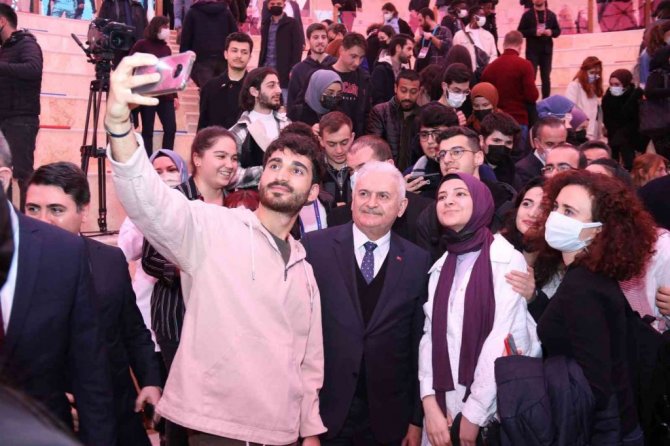 Öğrencilerden gelen Ukrayna ile Rusya savaşı ile ilgili soruyu cevaplayan Binali Yıldırım, Türkiye'nin Rusya ve Ukrayna ile 40 milyar dolarlık ticaret hacminin olduğunu söyledi. Karadeniz'e giriş kapısının Türkiye olduğunu hatırlatan Binali Yıldırım, "Ukrayna'yı hem NATO'ya hem de Avrupa Birliğine almak istediler. Rusya'da buna itiraz etti. Rusya, "Doğu'ya doğru genişlemenize razı değilim, bunu yapmayın" dedi. Bu inatlaşma yıllar geçtikçe arttı. Bunun üzerine Kırım işgali oldu. Kırım'ı Rusya 2014'de aldı. Ne Amerika ne de Avrupa, Ukrayna ile ilgili politikasında bir değişiklik yapmadı. İşler bu noktaya geldi. Hiçbir savaş haklı değildir. Savaşın kazananı olmaz. En kötü barış bile savaştan daha iyidir. Bizim konumumuz çok özel. Karadeniz'e giriş kapısı Türkiye'dir. Çanakkale ve İstanbul Boğazı, Karadeniz'e diğer ülkelerin açıldığı kapı bizden geçiyor. Hem Ukrayna ile hem de Rusya ile derin, tarihten gelen, ekonomik ve enerji ilişkilerimiz var. Rusya ile Türkiye'nin toplam ticareti 33 milyar dolar, Ukrayna ile 7 buçuk milyar dolardır. Kabaca 40 milyar dolar ticaretimizim olduğu 2 ülkeden bahsediyoruz. Bu da toplam ticaret hacmimizin yüzde 10'u mertebesinde. Bu iki ülkeden, ülkemizi ziyaret eden insan sayısı 8 milyon. Bizden de oraya giden milyonlarca insan var. Dolayısıyla burada meydana gelen bir istikrarsızlık" diye konuştu.