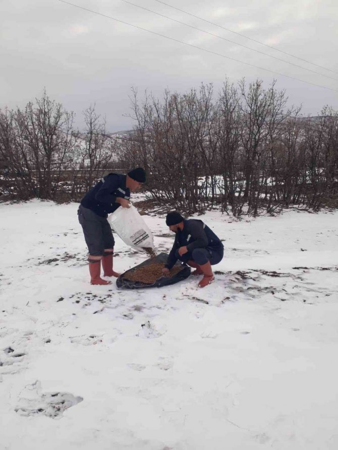 Sahipsiz hayvanların aç kalmaması için doğaya yem bırakma etkinliğinin kış boyunca süreceğini bildirildi.