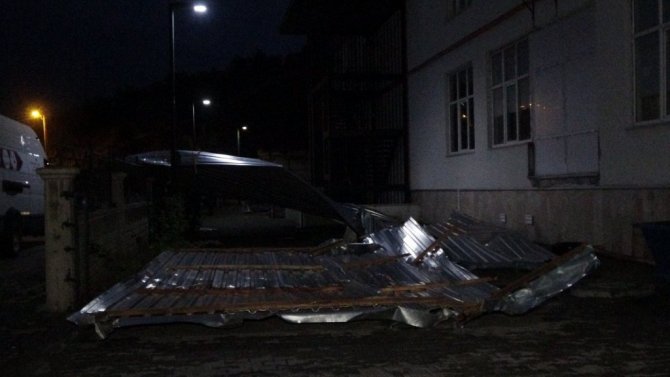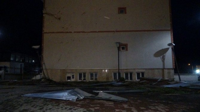 Bingöl'de etkili olan fırtına nedeniyle bir atölyenin çatısı uçtu, o anlar güvenlik kamerasına yansıdı.