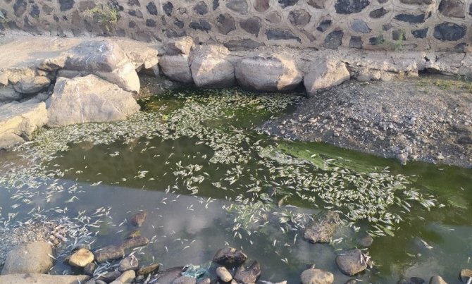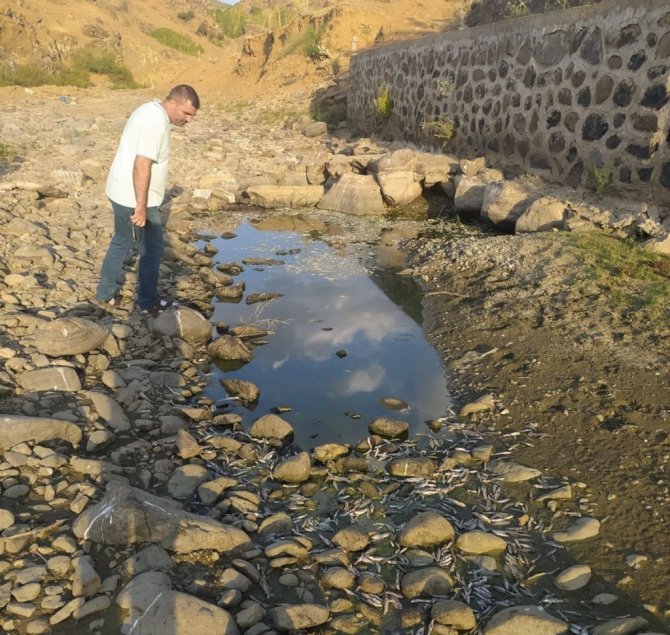 Bingöl'ün Genç ilçesinde derede yaşanan kuraklık nedeniyle yüzlerce balık telef oldu.