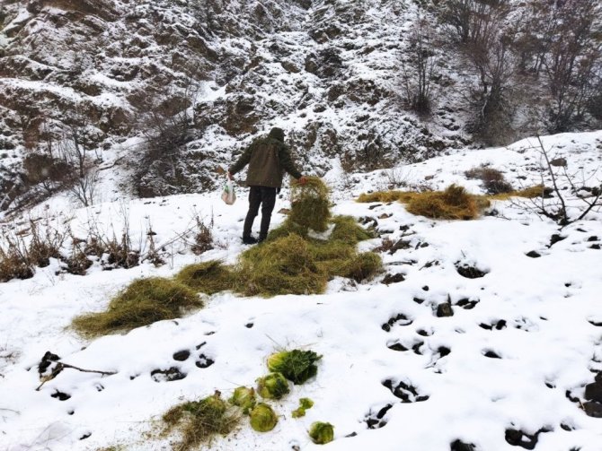 Bingöl'de etkili olan kar yağışı ve soğuk hava koşulları nedeniyle, gıda bulmakta zorluk çeken yaban hayvanları için yemleme çalışması yapıldı.