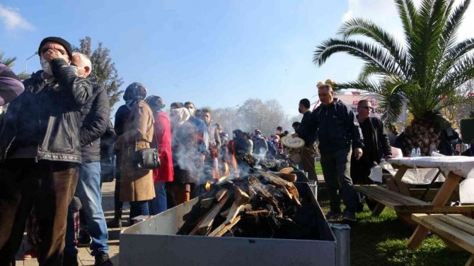 Binlerce vatandaş aynı mangalda hamsi pişirdi
