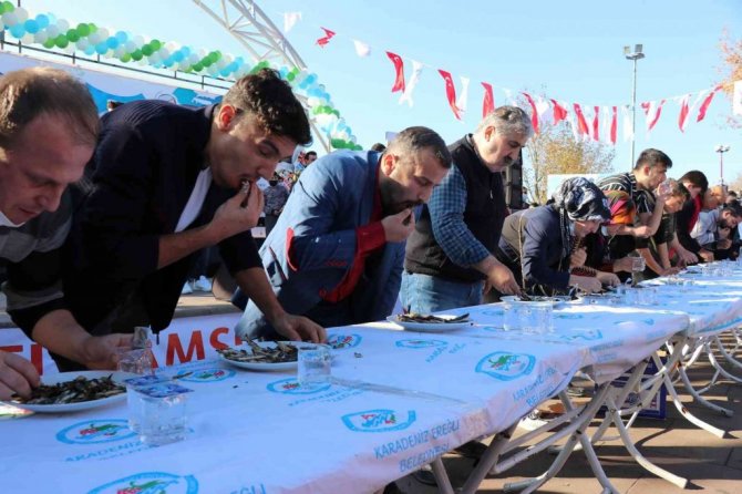 Zonguldak'ın Ereğli ilçe Belediyesi tarafından bu yıl 14.'sü düzenlenen Hamsi Festivalinde binlerce vatandaş mangalda pişen hamsileri yerken, çalan şarkılarla da doyasıya eğlendi.