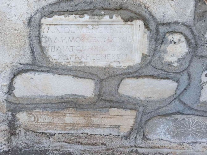 Şuhut ilçe merkezi Yalı Mahallesi'nde yaklaşık 60 yıl önce yapılan evin bahçe duvarını görenler gözlerine inanamıyor. Roma döneminden kalma duvar ve Osmanlı döneminden kalma çeşmenin üzerine iki katlı ev yapılırken, evin istinat duvarı ise tarihi eserlerin üzerine yapıldı. Duvarın içinde Osmanlıca ve Grekçe yazılı yazıtların çevresi ile tarihi motiflere sıva yapılırken dokunulmadığı ve çıplak gözle görüldüğü dikkatlerden kaçmadı. Roma döneminden kaldığı öğrenilen yazıtın bir mezar yazıtı olma ihtimalinin yüksek olduğu öğrenilirken, Osmanlıca yazıların bulunduğu kısmın ise eski bir çeşme olduğu belirtildi.