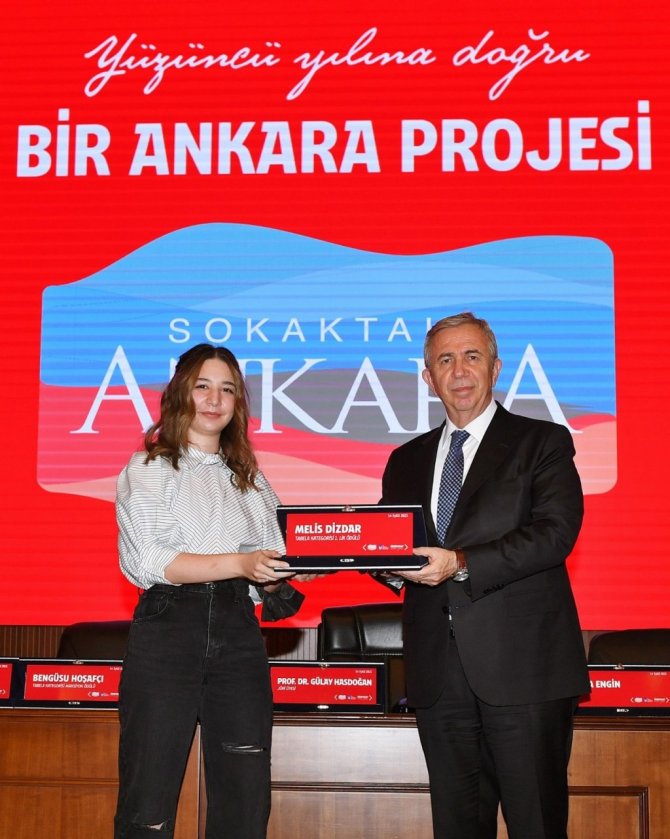 Reklam tabelası ve totemlerinin neden olduğu görüntü kirliliğinin ortadan kaldırılması ve Başkent'e özgü değerlerin yeniden canlandırılması için Ankara Kent Konseyi bünyesinde oluşturulan çalışma grubu tarafından mayıs ayında başlatılan "Bir Ankara Projesi: Sokaktaki Ankara" projesinin ilk yarışmasının kazananları ve jüri üyelerine ödülleri törenle verildi. Ankara Büyükşehir Belediyesi Konferans Salonu'nda gerçekleşen "Cadde ve Sokak Tabelaları, Bina Kapı Numaraları, Mimari Tanıtım Tabelaları ve Özgün Yazı Tipi Ulusal Tasarım Yarışması" ödül törenine Büyükşehir Belediye Başkanı Mansur Yavaş, Genel Sekreter Reşit Serhat Taşkınsu, belediye bürokratları ve yarışmacılar ile yakınları katıldı. Zabıta Daire Başkanı Mustafa Koç ve Prof. Dr. Gülay Hasdoğan'ın yarışma süreciyle ilgili bilgi vermesinin ardından bir konuşma yapan Başkan Mansur Yavaş, "Bir kenti değiştirmek istiyorsanız önce o kentin kendine ait değerlerini, o kenti başka kentlerden ayıran bir takım özelliklerini de ortaya çıkarmanız lazım" dedi.