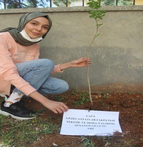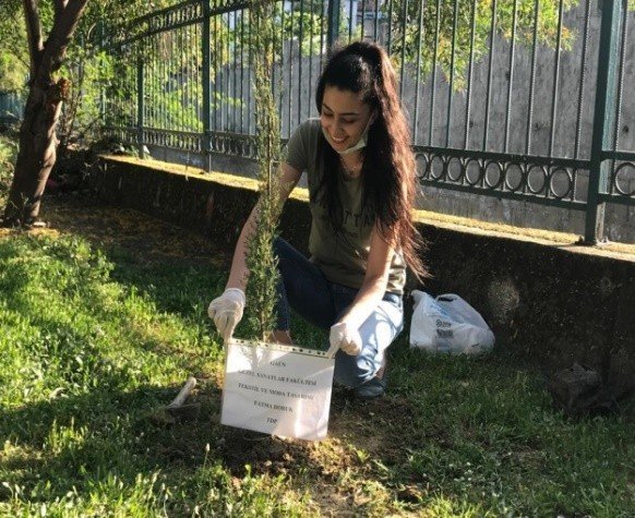 Pandemi şartları nedeniyle öğrencilerin bulunduğu şehirlerde gerçekleştirilen, GAÜN Öğretim Üyesi Proje Yürütücüsü Doç. Dr. Nazan Avcıoğlu Kalebek ve 61 öğrencinin katıldığı etkinlik ile Türkiye'nin farklı şehirlerinde park, bahçe, tarla ve mezarlık gibi farklı mekanlarda 100 adet fidan dikildi.