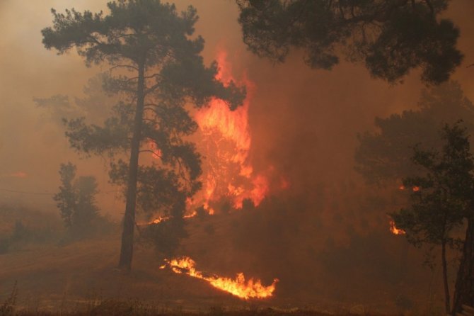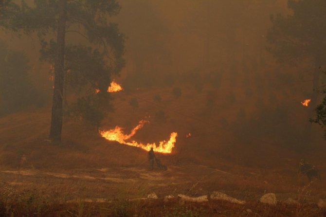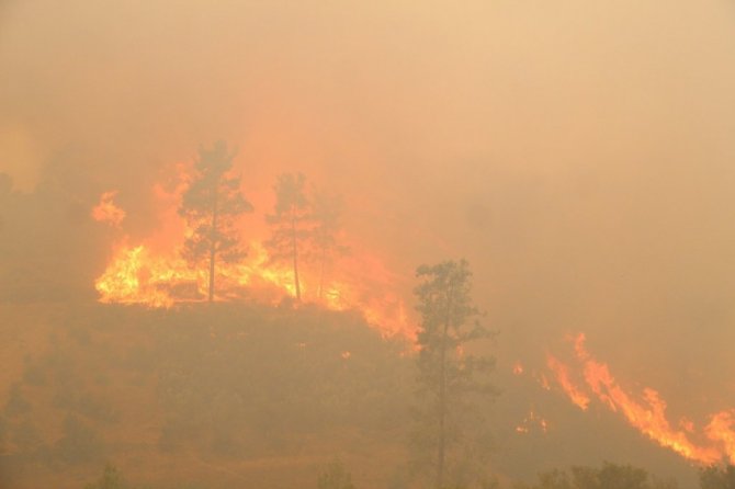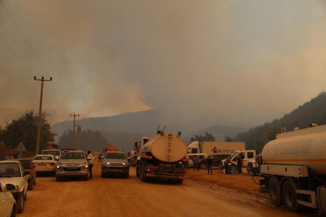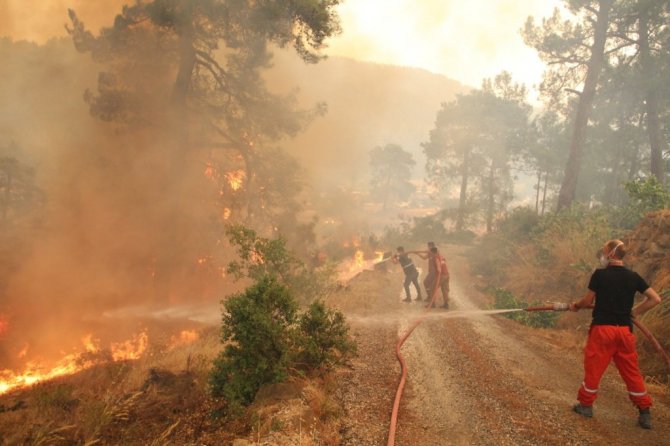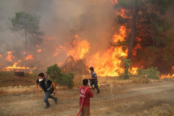 Manavgat ilçesinde 6 gün önce başlayan orman yangını ilerlemeye devam ediyor. Yangın ilk çıktığı noktadan yaklaşık 40 kilometre kuzeyde bulunan Beydiğin Mahallesi'ne kadar geldi. Bir dağın yamacına kurulu olan mahalle bir anda alevlerin arasında kaldı. Şiddetli rüzgarın etkisi ile büyüyen yangından çıkan alevler, metrelerce havaya yükseldi. Alevlerin mahalleyi sarmasının ardından bir yandan ekipler diğer taraftan mahalle sakinleri adeta seferber oldu. Ekipler evlerin içerisinde doğru ilerleyen yangına iş makineleri, arazözlerle müdahale eti. Evlerin sınırına kadar gelen alevleri ekipler güçlükle söndürdü. Vatandaşlar işe testereler ile etraftaki büyük ağaçları keserek alevlerin sıçramasını engellemeye çalıştı. Şiddetli rüzgar nedeniyle alevler sık sık yön değiştirdi. Alevlerin arasına giren vatandaşlar tehlikeye rağmen ellerindeki dal parçaları ile ateşi söndürmeye çalıştı. Yamaçtan yamaca sıçrayan alevleri söndürmek için vatandaşlar seferber oldu. Yaklaşık 1 saatlik çalışmanın ardından vatandaşlar ve ekiplerin alevlerin mahalleye girmesini güçlükle engelledi. Rüzgarın etkisiyle karşı yamaca atlayan yangın ilerleyerek etkisini devam ettiriyor. Yangında bir kişi de dumandan etkilenerek, hastaneye kaldırıldı.