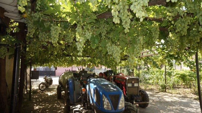 Akçam, yaz aylarında üzüm asmasının gölgesinde serinlerken, salkımları da seyretmenin insana ayrı bir keyif verdiğini sözlerine ekledi.