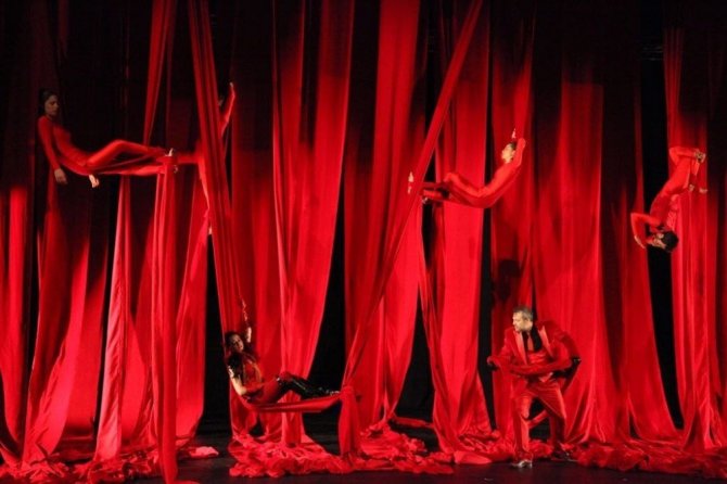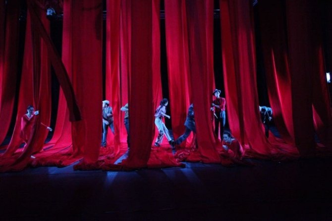 Profesyonel akrobatlarıyla kırmızı bir orman oluşturan oyun, Kiril Dzajkovski’nin müzikleri ve oyuncuların olağan üstü koreografisiyle, zaman ve mekan algısının sahne üzerinde ne denli ustaca değiştirilebileceğini gözler önüne seriyor.