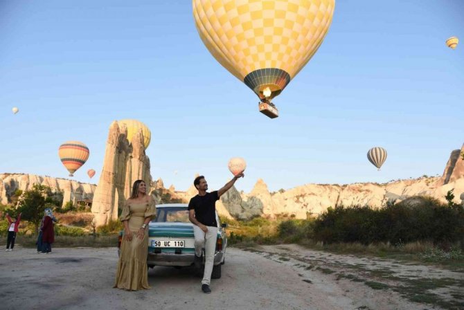 Türkiye'nin önemli turizm merkezlerinden Kapadokya'yı ziyaret eden turistlerin rağbet gösterdiği aktivitelerin başında gelen sıcak hava balon turlarına ilgi her geçen gün artıyor.
