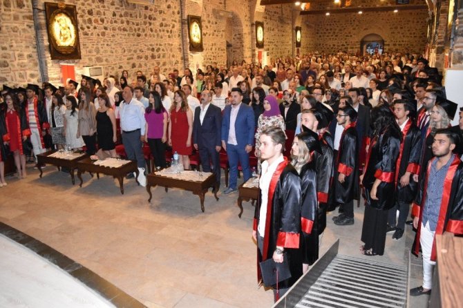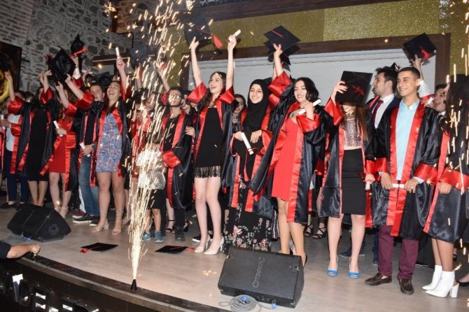 Konuşmaların ardından dereceye giren öğrenciler plaketle ödüllendirildi. Mezuniyet belgelerini alan öğrenciler tören sonunda keplerini havaya fırlattı.