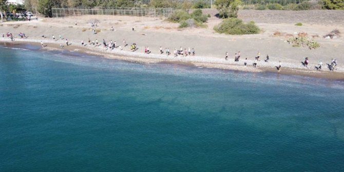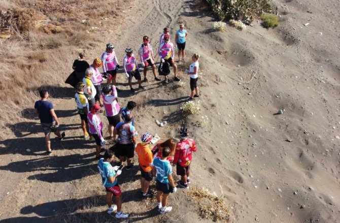 Bisiklet tutkunları caretta carettalar için pedal çevirdi, sahili temizledi