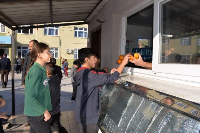 Bergama 80. Yıl Cumhuriyet Yatılı Bölge Okulunda öğrenciler ’Beslenme Dostu Okul Projesi’ kapsamında haftanın üç günü Beden Eğitimi Öğretmeni eşliğinde sabah sporu yapıyor, meyvelerini yedikten sonra derse başlıyor.
