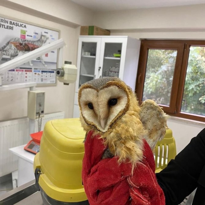 Karabük'te bitkin halde bulunan peçeli baykuş, bakımı yapıldıktan sonra sağlık kontrolünden geçirilip doğaya bırakıldı.