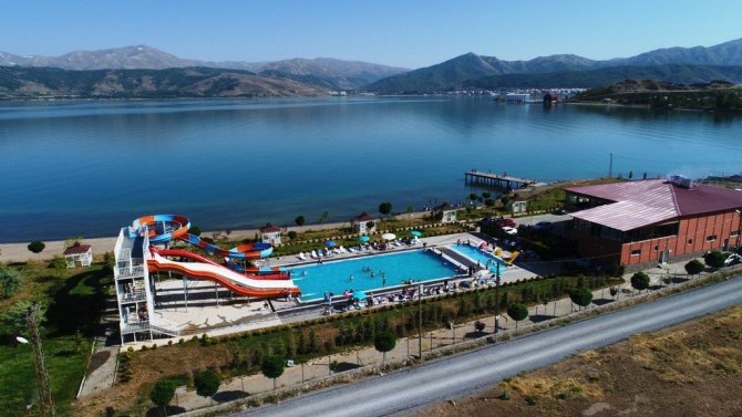 Kale Mahallesi'ndeki 15 bin metrekare alan üzerinde kurulan Aqua Park Su Sporları Kompleksi'nde biri yarı olimpik yüzme havuzu ve diğeri çocuk havuzu olmak üzere 2 havuz, 4 kaydırak, soyunma ve giyinme odaları, duş kabinleri, kafeterya, restoran, kamelyalar, açık otopark, yeşil alanlar, yürüyüş yolları, özel etkinlik ve spor alanları, sahil yolu ve plaj alanları yer alıyor. Kurulum aşaması yaklaşık 3 yıl süren tesisi hizmete açmanın mutluluğunu yaşadıklarını belirten Tatvan Aqua Park Su Sporları ve Eğlence Merkezi Müdürü Erhan Dinç, "Yorucu bir süreçten sonra çalışmalarımızı tamamlayarak memleketimize güzel bir tesis kazandırdık. Gençlerimiz, çocuklarımız ve aileler bu hizmeti hep dışarıda arıyorlardı. Çok şükür hizmeti buraya taşımış olduk. Yüzme havuzları, kafeterya ve restoran ile diğer ihtiyaçların karşılanabileceği bir tesis açtık. Ayrıca, göl kıyısındaki kumsal alanı düzenli hale getirdik ve çevreyi yeşillendirdik. Kısa süreli konaklamalar için de bungalov evler kurmayı planlıyoruz" dedi.