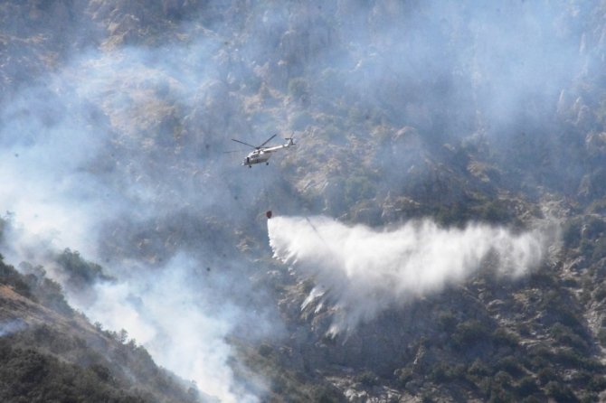 Yangın söndürme helikopteri, arazöz, müdahale aracı, itfaiye aracı ve orman işçileri ile yapılan mücadele sonunda yangın kontrol altına alınarak söndürüldü.