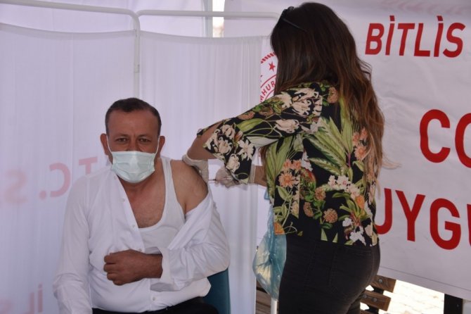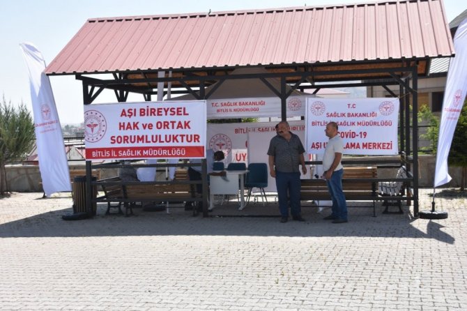 Bitlis ve ilçelerinde 21 noktada oluşturulan çadırlarda randevusuz aşılama çalışmalarının devam ettiği Bitlis'te, aşı oranı 32,8'e yükseldi. Türkiye ortalamasının altında olan aşı oranını yükseltmek için Bitlis ve ilçelerinde 80 ayrı ekip, köy ve merkezlerde aşılama çalışmalarını sürdürüyor.