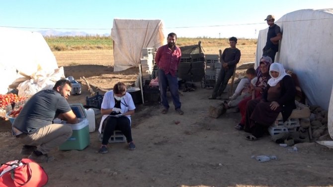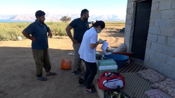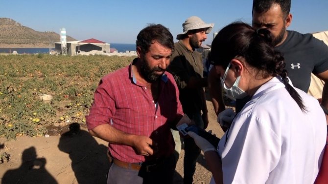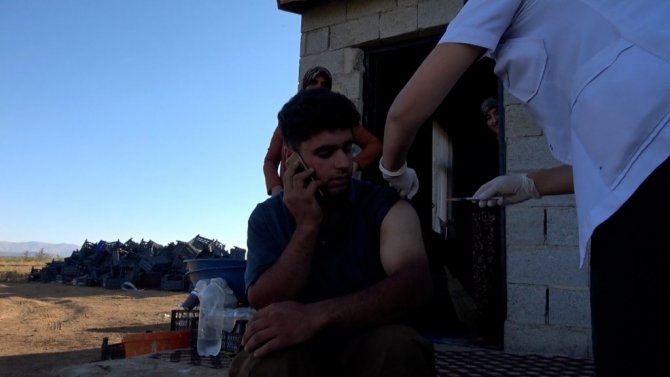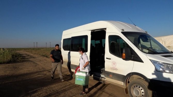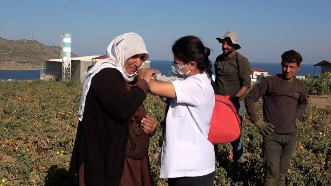 Bitlis İl Sağlık Müdürlüğü mobil sağlık ekipleri, tarlada çalışan çiftçileri de unutmadı. Tatvan ilçesine bağlı Kıyıdüzü köyünde domates eken çiftçilerin aşılarını yapan sağlık ekipleri, risk haritasında "mavi" kategori için mücadeleye devam ediyor.