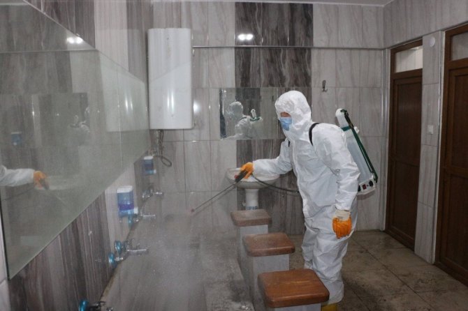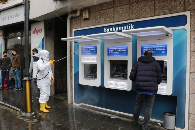 Bitlis'te her gün binlerce vatandaşın işlem yaptığı ATM'ler ve ibadethaneler Bitlis Belediyesi ekipleri tarafından dezenfekte ediliyor. Ekipler, camilerde, mescitlerde, ATM'lerde ve tüm noktalarda, resmi kurum binalarında, banka şubelerinde ve daha birçok noktada dezenfekte çalışması gerçekleştiriyor. Bitlis Belediyesi ekiplerince kısa zaman içerisinde şehir merkezinde belirlenen tüm noktalarda dezenfekte çalışmalarının hızla yapılarak tamamlanacağını ifade eden Belediye Başkan Nesrullah Tanğlay; "Dünyayı tehdit eden ve küresel bir salgın haline gelen Korona virüse karşı dezenfeksiyon çalışmalarını Belediyemiz Temizlik İşleri ekipleri Tarafından program dahilinde sürdürüyoruz. Bu kapsamda kent Merkezinde vatandaşlarımızın yoğun olarak kullandığı Camiler Banka ve Postane ATM'leri düzenli olarak dezenfekte çalışmalarını sürdürüyoruz . Yaptığımız planlama ile camiiler ve kamu kurumlarında da dezenfekte çalışmaları yapıyoruz ve yapmaya devam edeceğiz. Tüm dünyayı tehdit eden korona virüsü panik yapmadan gerekli önlemlerimizi alarak oluşabilecek tehlikelerin önüne geçeceğiz" dedi.