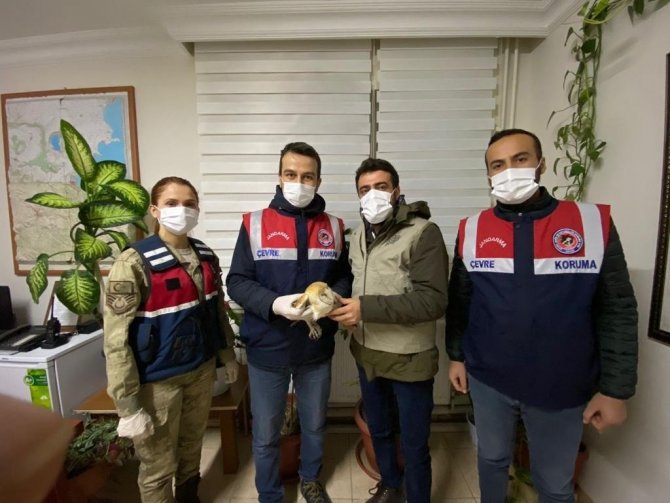 Bitlis'in Tatvan ilçesinde yaralı bulunan peçeli baykuş, jandarma ekiplerince Bitlis Doğa Koruma ve Milli Parklar (DKMP) Şube Müdürlüğüne teslim edildi.