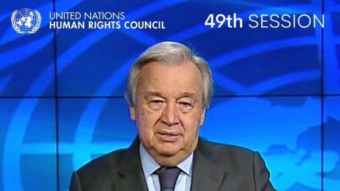 Birleşmiş Milletler İnsan Hakları Konseyi'nin 49'uncu oturumunda açılış konuşması gerçekleştiren BM Sözcüsü Genel Sekreter Antonio Guterres, "İnsan...