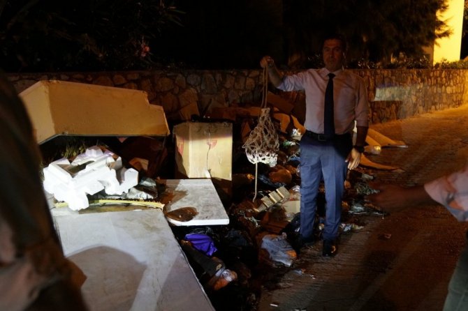 Bodrum Belediye Başkanı Ahmet Aras yoldan geçerken gördüğü manzara karşısında çileden çıktı. Çöp kutusunun etrafına atılan malzemelere isyan eden Aras, bunları buraya atanları bulacaklarını söyledi.