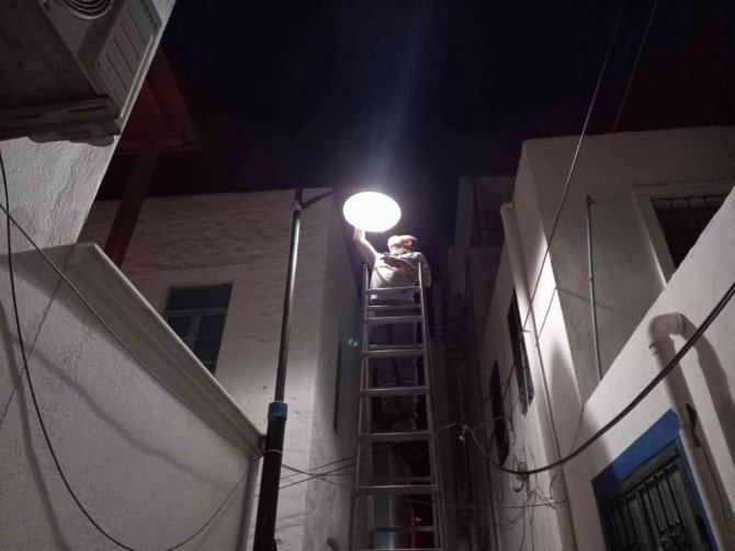Bodrum Belediyesi, Bodrum'un birçok sokak ve caddesinde aydınlatma çalışmaları gerçekleştirip meydana gelen arızalara da anında müdahale ediyor.