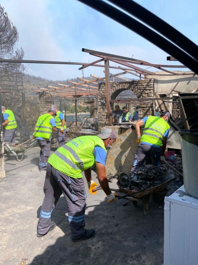 31 Temmuz günü Milas'a bağlı Beyciler Mahallesi'nde başlayan ve Bodrum sınırları içinde kalan yaklaşık 9 bin hektar ormanlık alanın da yok olduğu, bazı yerleşim yerlerinin zarar gördüğü yangın felaketinin izleri siliniyor. 6 gün süren yangın sonrası bölgede soğutma çalışmalarının tamamlanmasının ardından belediye ekipleri yangından etkilenen Mazı Mahallesi'nde bir taraftan hasar tespit çalışmalarına başlarken diğer taraftan da moloz kaldırma çalışması başlattı. Mazı Mahallesi'nde ağır ve orta ölçekli hasar gören toplam 22 konut ve işletmeye ilk olarak gıda ve hijyen malzemeleri desteğinde bulunan belediye ekipleri, acil ihtiyaçların karşılanması için yoğun çaba sarf etti. Bodrum Belediyesi bünyesinde oluşturulan Hasar Tespit Komisyonu tarafından kısa sürede hasar tespit çalışmalarının tamamlanmasıyla birlikte iyileştirme çalışmaları da sistemli bir şekilde başlatıldı.