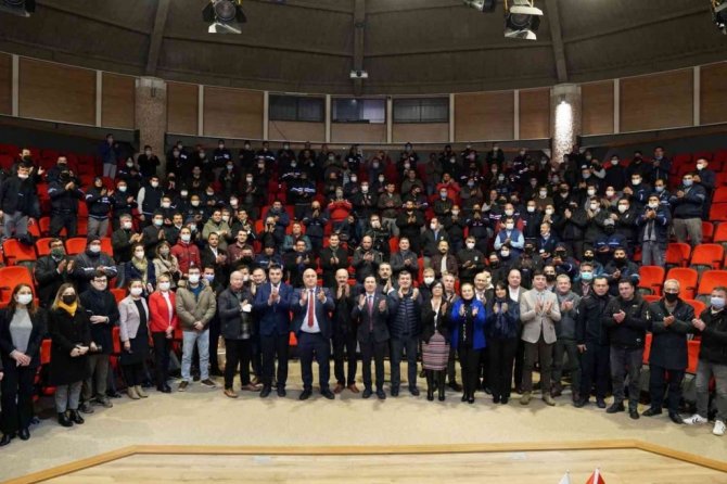 Sendika Genel Merkez Denetleme Kurulu Üyesi Sedat Küçük ise; "Kocaeli'nden buraya gelerek, bu soğuk havada böyle sıcak bir yuvayla beraber olmak beni çok mutlu etti. Bizi enflasyon canavarına yedirmeyen, bizimle beraber düşünen ve bizimle beraber yaşayan belediye başkanımıza imzaladıkları bu ek protokolden dolayı minnettarız, çok teşekkür ederiz. Genel Başkanımız Nihat Yurdakul ve tüm genel merkez yöneticilerimizin sizlere çok selamı var. Herkese hayırlı olmasını diliyorum." diye konuştu.