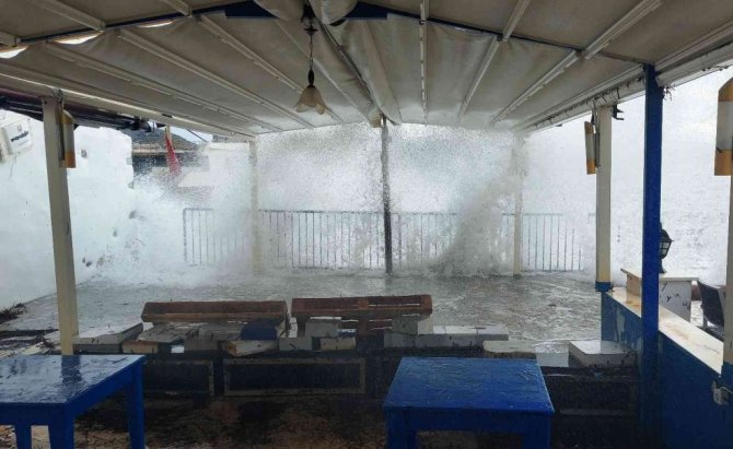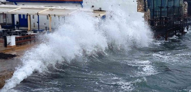 Muğla'nın Bodrum ilçesinde saatteki hızı zaman zaman 80 kilometreye kadar çıkan fırtına nedeniyle feribot seferleri iptal oldu, dalgalar sahili dövdü.