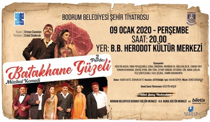 Geçtiğimiz hafta sonu Muğla Büyükşehir Belediyesi’nin daveti ile yaklaşık 750 kişinin izlediği Batakhane Güzeli beğeni ile izlenmeye devam ediyor. 09 Ocak 2010 Perşembe Saat: 20.00’de Herodot Kültür Merkezi’nde tiyatro severlerle buluşacak olan, Bodrum Belediyesi Şehir Tiyatrosu’nun ilk müzikal oyunu “Batakhane Güzeli”ni Erman Canatan yazdı. Tiyatronun ünlü oyuncusu Erdal Cindoruk’un yönettiği oyun, Yeşilçam Sineması’ndan esinlenerek izleyiciye “esas oğlan, esas kız ve kötü adam, aşk, intikam, kıskançlık ve entrika” dolu bir müzikal keyfi yaşatıyor.