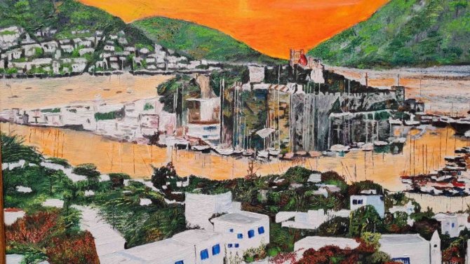 Ressam Serpi Koca'nın "İki Kıyı Bir Deniz" isimli ilk sergisi, Muğla'nın Bodrum ilçesinde sanatseverlerin beğenisine sunuldu.