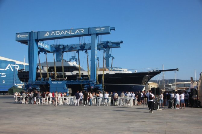 Muğla'nın Bodrum ilçesinde üretilen 37 metre uzunluğunda 8 metre genişliğindeki lüks yat, düzenlenen törenle denize indirildi.