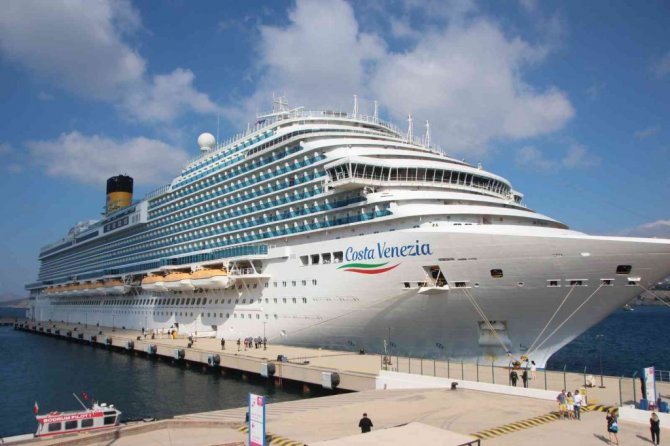Sabah saatlerinde ilçeye gelen İtalyan bayraklı 323 metre uzunluğunda 135 bin ton ağırlığındaki "Costa Venezia" isimli gemi, Gemi Yanaşma İskelesi'ne demirledi. İçinde lüks otel konforunda 2 bin 116 kamara bulunan gemide bin 254 yolcu ve bin 78 personel bulunduğu bildirildi. Gemi, Bodrum Bandosu'nun müzikleri eşliğinde karşılandı.
