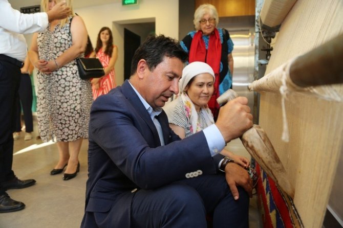 Asırlık kilimleri dikkatle inceleyen Başkan Aras bir ara Karaova’dan Neşe Cangır’ın başında olduğu nostaljik dokuma tezgahının başına geçerek, ilmek attı. Bodrum’un en büyük zenginliğinin tarihinden ve kültüründen gelen gelenekleri olduğunu söyleyen Başkan Aras, bugün metropole dönüşmeye başlayan Türkiye’nin en gözde turizm merkezinde ‘yerele sahip çıkmak’ gerektiğine işaret etti. Aras, “Bodrum’u korunması, yerel değerlerine ve kültürüne sahip çıkmakla mümkündür. Aynı zamanda, bu yarımadaya tatil yapmak ya da yerleşmek için gelen insanların Bodrum kültürüne, doğasına, denizine, mimarisine adapte olarak uyum sağlaması çok önemli. Bodrum’un kültürü dünyaya yeter. Biz bu kilimleri naftalin kokuları arasında görür, sandıklarda saklardık. Çünkü annelerimiz bunlara çocuğu gibi sahip çıkardı.” diye konuştu.
