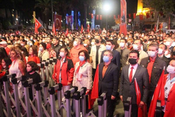 Bodrum Belediye Meydanı'na ulaşan vatandaşları, burada Bodrum Belediyesince düzenlenen ve Melike Öcalan'ın sunduğu program karşıladı. Türkiye Cumhuriyeti'nin kurucusu Gazi Mustafa Kemal Atatürk, silah arkadaşları ve tüm şehitler için saygı duruşunda bulunulmasıyla başlayan programda konuşan Belediye Başkanı Ahmet Aras, herkesin bayramını kutlayarak şunları dile getirdi: