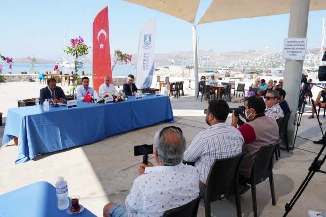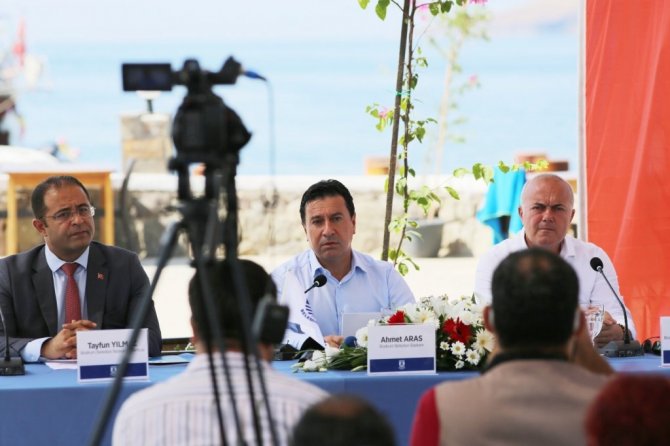 Bodrum Belediye Başkanı Ahmet Aras, Kurban Bayramı öncesi düzenlediği basın toplantısında; bayram için aldıkları önlemleri ve belediyenin çalışmaları hakkında kamuoyunu bilgilendirdi. Müsgebi Mahallesi Ortakent Belediye Kafe'de gerçekleştirilen toplantıya başkan yardımcıları Önder Batmaz ve Tayfun Yılmaz, belediye birim müdürleri ile çevredeki vatandaşlar katıldı. Belediyenin sosyal medya hesaplarından canlı yayın yapılarak gerçekleştirilen toplantıda, Kurban Bayramı tatili boyunca 2 bin 500 kişilik belediye personeli ile 7/24 sahada olacaklarına vurgu yaparak konuşmasına başlayan Başkan Ahmet Aras, "Bodrumumuzu iyi ve doğru yönetebilmek için o kenti paylaşan her kesimin, her vatandaşın güçlü aidiyet duygusundan yararlanmamız gerekir" diyerek her adımı bu anlayışla atmaya özen gösterdiklerini söyledi.