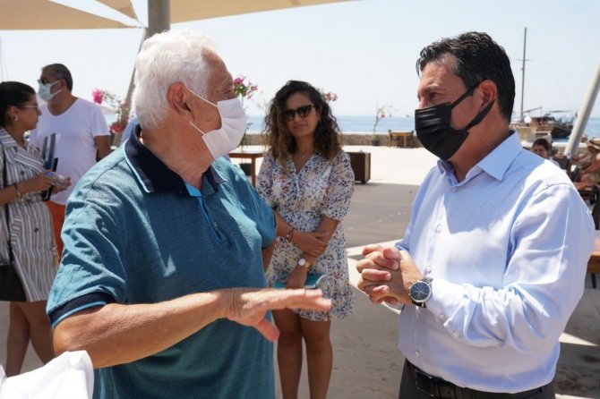 15 Haziran'da başlayan inşaat yasakları kapsamında denetimlerin sürdürüğünü belirten Başkan Aras, "İnşaat yasaklarının talimatını Turizm Bakanlığı verir. "15 Haziran -15 Ekim arasında inşaat yasakları uygulanacak" der. Turizmi negatif etkileyecek olan hafriyat gibi çalışmaların, engellenmesi demek. Biz zabıtamızla 15 Haziran'dan bu yana da yaptığımız denetimler sonucunda 381 inşaat çalışmasını durdururken, ilgili firmalara 260 ceza keserek 27 şantiyeyi mühürlemişiz. Bölgemizde, 53 bini aşkın Yapı Kayıt Belgesi aldığı belirlendi. Sokakta, caddede kamyon, beton mikseri gibi ağır tonajlı araçların denetimi zabıtamızda değildir. Zabıtamızın trafikte yetkisi yoktur, tamamen Jandarma ve emniyet trafik ekipleri denetimindedir. Belediyenin yol kesip de "sen nereye gidiyordun" demek gibi bir yetkisi yoktur. Yollardaki iş makineleri ve hafriyat kamyonlarının denetim yetkisi emniyet ve jandarma trafiktedir. Biz de belediye olarak koordineli bir şekilde çalışıyoruz. Devam eden şantiyelere denetimlerimiz sürüyor" diye konuştu.