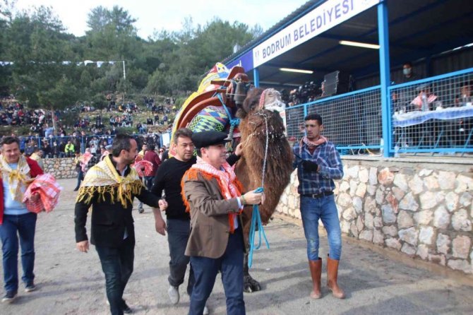 Güreşlere katılan Bodrum Belediye Başkanı Ahmet Aras da devesi ile alanda dolaşarak halkı selamladı. Aras'a güreş severlerin yoğun ilgisi vardı.