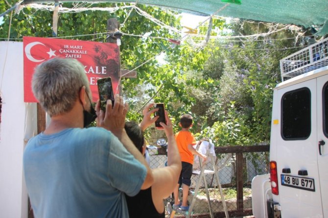 Sami Eriş adlı mahalle sakini de "Tuhaf bir hayvan, daha önce görmedim. Hayvan ağacın başından inmiyor, korkuyor hayvan. Bizden korkuyor, ne yapsın. Değişik bir hayvan" dedi.